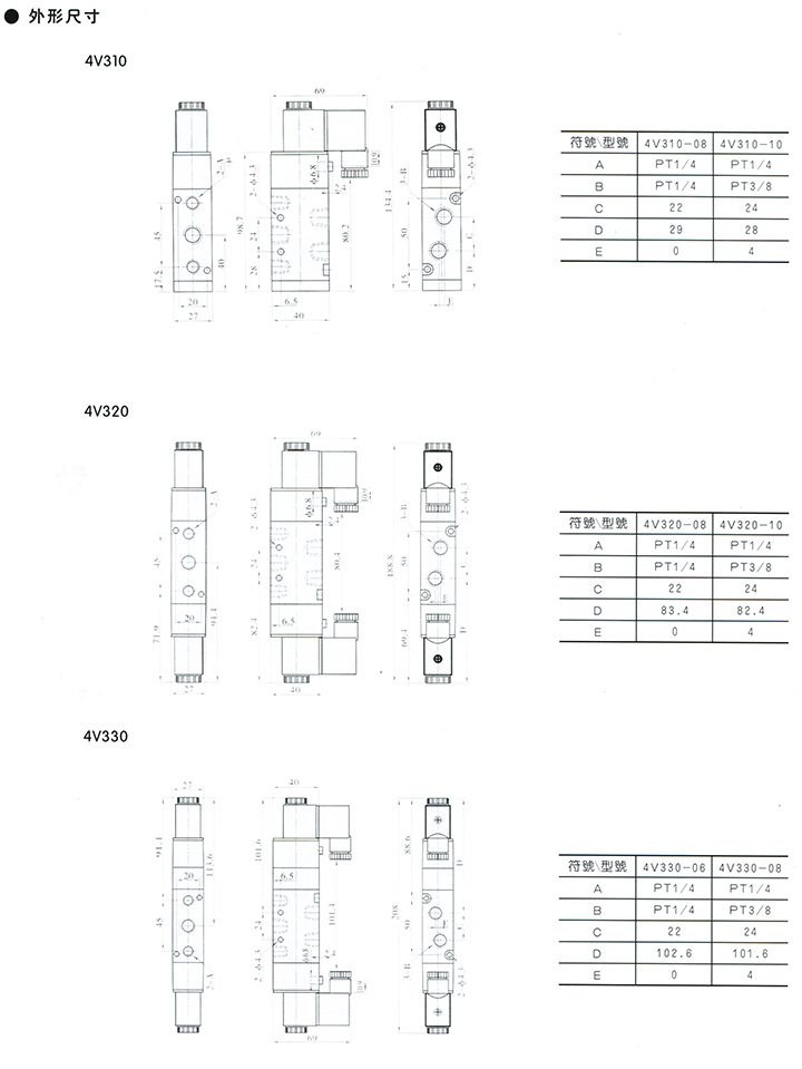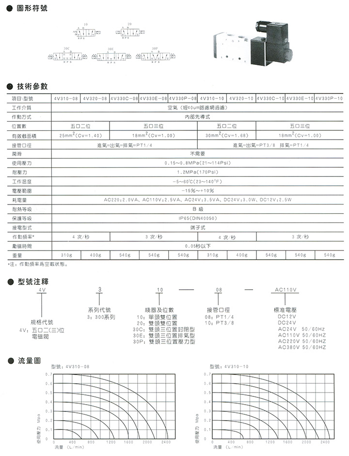 4V300系列電磁閥(五口二位 五口三位)