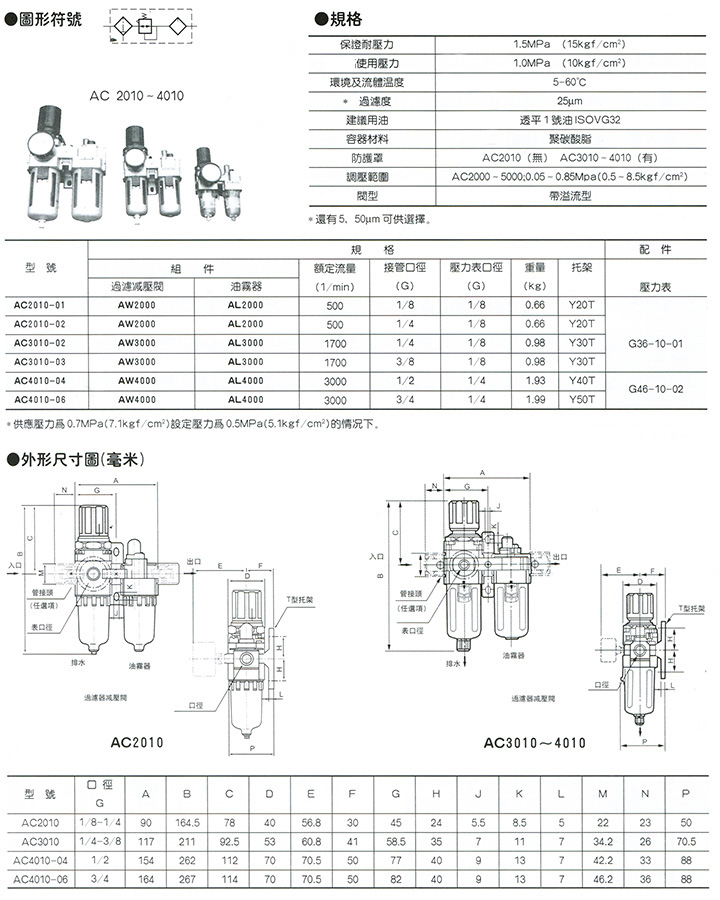 AC2010~4010系列空氣過濾組合(二聯(lián)件)